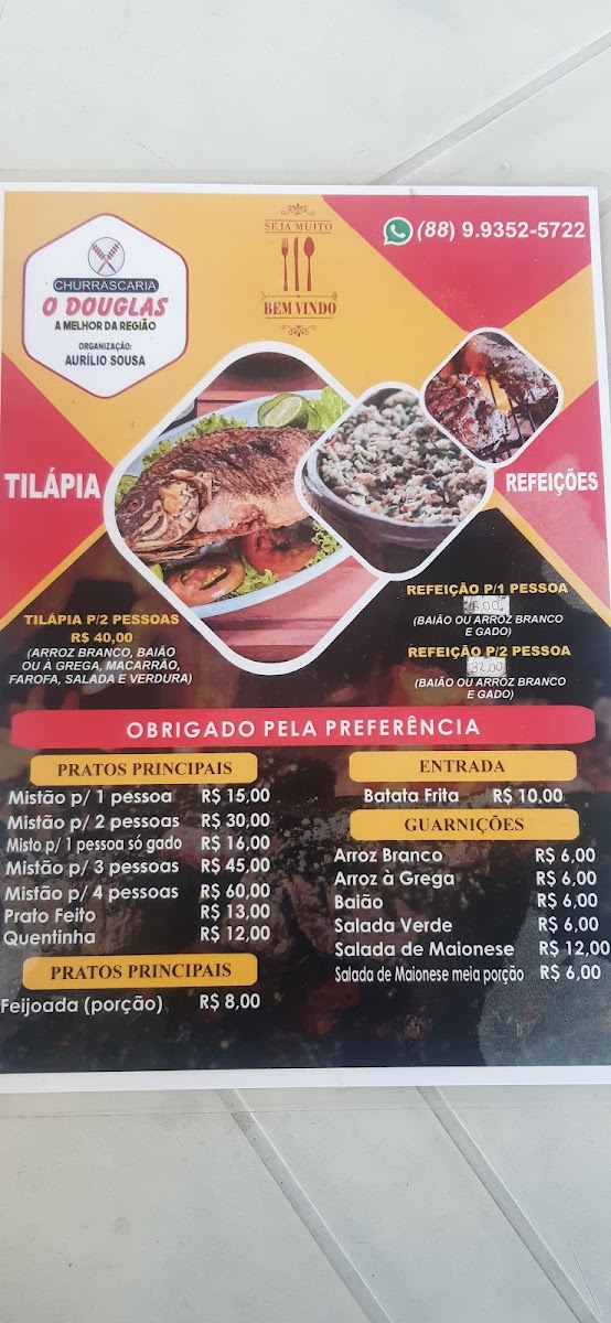 Located in the charming town of Viçosa do Ceará, Churrascaria e Pizzaria o Douglas offers a delightful culinary experience where traditional Brazilian barbecue meets mouthwatering pizza. This restaurant stands out for its vibrant atmosphere and welcoming service, catering to a diverse clientele, as highlighted by satisfied patrons. Guests rave about the restaurant's excellent value, with dishes that not only satisfy the palate but are easy on the wallet.